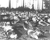 1893: Jackson's advertisements in Scandinavian-American newspapers for Laplanders or others who are skilled in reindeer management receive 250 replies. One of the respondents, William Kjellman, is hired as superintendent at Teller Station. He is a Kven [a descendant of Finnish immigrants to Norway who have intermarried with Sami for many generations] from Madison, Wisconsin who has worked in Finnmark as a reindeer herder and speaks the Sami language. Tollef Brevig, a teacher and missionary from Crookston, Minnesota, is hired as assistant superintendent. William [W.T.] Lopp, a white teacher, is hired as superintendent of the Cape Prince of Wales reindeer station and mission. There are now 180 reindeer at Bering, but the Alaska Commercial Company abandons its lease of the island because it is too far from the mainland. 1894: Jackson receives $6,000 from Congress to fund the Reindeer Project, the first of $207,500 he will receive between 1894 and 1904. Jackson receives $6,000 from Congress to fund the Reindeer Project, the first of $207,500 he will receive between 1894 and 1904. In February Jackson sends Kjellmann to Kautokeino, Norway to recruit Sami herders. He stipulates that only Christians will be hired. Thirteen men and women sign three-year contracts for $27.50 per month plus food, clothing, and shelter. The group is called "The Kjellman Expedition." They leave Finnmark April 10 with four children, some dogs and some pulkas [Sami sledges]. The Kjellman Expedition arrives in New York May 12 by ship and continues on to Seattle, Washington by train, creating a media sensation along the way during stops at Madison, Wisconsin and St. Paul, Minnesota. They arrive at Teller Reindeer Station July 29 by whaler. The expedition arrives at Teller Reindeer Station July 29 by whaler. The Inuit nickname the Sami "The Card People" because the men's Four Winds hats resemble the hats on playing cards. Small herds of the Chukchi reindeer are distributed to some of the missions and each Sami and Inuit who participates in the Reindeer Project is to receive one female reindeer and its offspring per year. Inuit applications come in from all over Alaska but some are concerned that this will take young men away from hunting and fishing. The Sami teach herding techniques and how to milk, lasso and tame reindeer. They demonstrate how to make cheese, glue, sleds, fur boots, harnesses and other items. They are nicknamed "The Card People" because the men's Four Winds hats resemble the hats on playing cards. 1896: There are now 1175 reindeer in Alaska. Gold is discovered and steamers and launches begin to carry miners and supplies up the Yukon River. 1897: The Reindeer Project contracts run out. Three of the Sami families return to Finnmark, but Fredrik Larsen, and the Johan Tornensis and Mikkel Nakkala families decide to stay. Mikkel Nakkala, Kjellmann, and Per Rist, prove the value of reindeer as transport animals by undertaking a 1,240 mile reindeer-drawn sled expedition, beginning and ending at Teller Station. The water level in the Yukon River decreases dramatically due to mining operations. Ships can no longer navigate upstream and gold miners fear they will not receive supplies before winter. The chance of a possible disaster convinces Congress to authorize funds for Jackson. William Basi, a Kven cook, begins a diary on the Reindeer Project in Finnish and Norwegian. His cousin, Carl Sacariasen, another cook, also begins a journal. Both will be translated into English and published. A new reindeer station is established at Unalakleet and the main herd is taken there. Jackson decides to form a permanent Sami colony in Alaska and receives funding from the War Department to bring over a larger group and purchase more reindeer. Rist, Karl Suhr and Samuel Kemi return to Finnmark with Kjellmann to hire herders and obtain supplies for "The Lapland-Yukon Relief Expedition" to save the starving miners. Kjellmann buys 500 tons of lichen in R�ros in the south for the reindeer, then heads north to Finnmark. There the applicants are promised that they will "be treated as white people" when they get to Alaska. 1898: By January, 72 adults have signed two-year contracts. They are guaranteed food, shelter, and health benefits, and at the completion of their tours of duty they are to be paid in either reindeer or money. As an inducement to remain in Alaska, they are given the option of a US government loan of one hundred reindeer for three to five years to start their own herds. On February 28, a total of 113 men, women and children 539 draft reindeer, 418 sleds, and thelichen supply arrive in New Jersey on board The Manitoba. The Lapland-Yukon Relief Expedition becomes known as "The Manitoba Expedition." They cross the US by train and arrive in Seattle March 7, to find that the expedition might be cancelled. The Alaskan miners are no longer starving and the ship that was to transport them is in the Philippines picking up troops for the Spanish American War. During a nine-day delay a five-year-old boy dies. The lichen supply is mistaken for packing material and thrown away and the reindeer are taken to Woodland Park Zoo to graze, but 12 starve to death. Jackson convinces the government that the Sami and the reindeer can be helpful in the missions. Kjellman's cousin Hedley Redmyer, a Norwegian Sami living in Cook County, Minnesota, joins the expedition as supervisor and interpreter. Continued > |