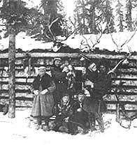 1925: In January, during the worst blizzard of the Alaskan winter season, Leonard Seppala mushes 340 miles in five and a half days carrying diphtheria serum from Nenana to the storm-stranded people of Nome. Seppola's Siberian dog sled team lead by "Togo" is so exhausted that several fresh teams of dogs must be used to finish. The lead dog of the final team, driven by Gunnar Kasson, is named after Samuel Balto. When the serum arrives in Nome, "Balto the Dog" is accorded a hero's welcome and receives the place in history that might have gone to "Togo." A statue of Balto's dog will later be erected in Central Park, New York City, the only public art to honor a specific animal. Later still, "Balto's dog" will become the subject of the Walt Disney full-length animated cartoon Balto. 1926: To promote the sale of reindeer meat and furs, the Lomen brothers collaborate with Macy's Department Stores to stage yearly Christmas parades with Santa Clauses and teams of reindeer driven by Sami and Inuit herders from Alaska. The major US cities targetted include Portland, St. Paul, Boston, San Francisco, Chicago, Seattle, and Brooklyn. The Lomens write fake children's letters asking about Santa Claus and reindeer which are published in US newspapers. Because of the letters and the parades, Santa Claus and reindeer become an integral part of the North American Christmas story. 1927: Nicholas Dimond buys a few reindeer from the Lomen brothers and begins his own Christmas reindeer promotion. Charles Boostrom and Joe Thomas (an Ojibwe from Grand Portage, Minnesota) join him to tour the Midwest annually. The reindeer are kept at Clearwater Lake in Cook County, Minnesota. 1928: Four Inuit herders headed by Chester Seveck form an association to compete with the Lomen brothers but they find that they cannot compete with the large well-financed company that has begun to absorb small Inuit operations. The Lomen brothers begin the successful breeding of caribou with reindeer on Nunivak Island, producing larger reindeer. 1929: Seeing the Inuit and Yup'iks lose their share of the reindeer industry to the Lomen brothers, Isak Haetta and other Sami quit Lomen and Company in protest. The cattle industry lobbies to discourage further reindeer meat promotion. In October the stock market crashes and the Depression begins. The market for reindeer meat and fur sales declines and no new markets are developed. Game in the Northwest Territories is depleted. The Canadian government buys 3,442 Alaskan reindeer from Lomen and Company. Carl Lomen asks Anders Baer, an elder of sixty years living in Seattle, to lead the reindeer drive from Nabaktoolik, Alaska to Kittigazuit, NWT. Baer accepts and Mikkel Nilluka agrees to be his assistant. Other Sami include Andrew Bango, Tom Nakkala and Ivar West, and Inuits include Shelby David, David Henry, August Ome, Sam Segeok and Theodore Kingeak. The 1,200 mile drive is planned as an 18-month Canadian Reindeer Project. It becomes known as "The Great Trek" which stretches into a perilous five-year journey. Severe weather, high mountain ranges, ravenous wolves, and supply shortages contribute to constant delays and the death of reindeer. 1930: The number of reindeer in Alaska has grown to 500,000, but the industry is considered to be on the wane. The Lomen brothers continue to buy up the reindeer owned by the missions, the Sami and the Inuit and come to monopolize and control the industry in Alaska, including three of the most important shipping posts. They also hold strategic positions in state government and own the major retail stores where herding supplies are sold. 1931: Sami from Kautokeino are recruited to maintain the herd Baer is bringing into Canada from Alaska. The group includes Mathis Haetta, Aslak Tornensis, his wife Susanne Johannesdatter and their daughter, and Mikkel Nilsen Pulk, his wife Anna and their three children Isak, Nils and baby Ellen. These families become known as "The Canadian Sami." Ellen will marry into an Inupialeut family and later become mayor of Inuvik. Sixty years later her son Lloyd Binder and other family members will still be involved with reindeer. Continued > |